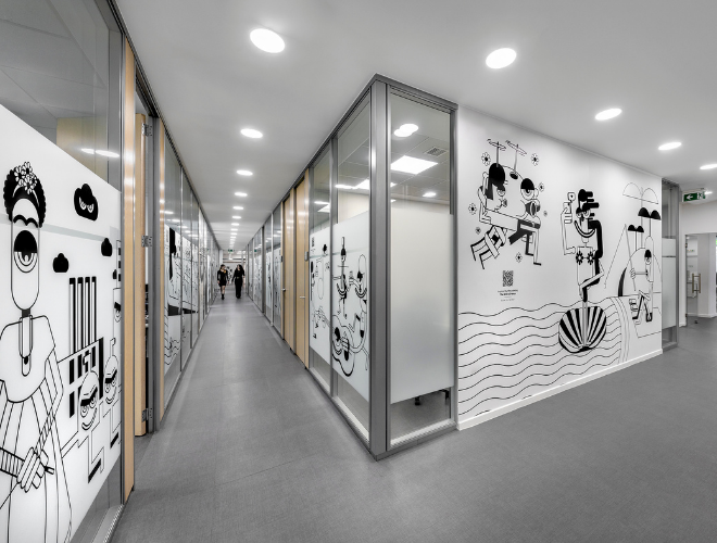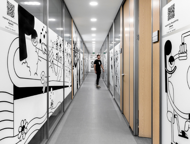 Τα νέα γραφεία της MullenLowe μετατράπηκαν σε μία διαδραστική γκαλερί. Μία «ωδή» στη σύγχρονη και διαχρονική δημιουργικότητα. 23 εμβληματικοί πίνακες «ζωντανεύουν», αναδημιουργούνται και διηγούνται τις ιστορίες των αυθεντικών και νέων έργων, μέσα από 23 QR codes. Στους διαδρόμους και τα γραφεία της εταιρείας μπορεί κάθε επισκέπτης να απολαύσει ένα αφιέρωμα στη δημιουργική διαδικασία που γεμίζει την καθημερινότητά των ανθρώπων της MullenLowe με διάθεση για δημιουργία και νέες ιδέες.