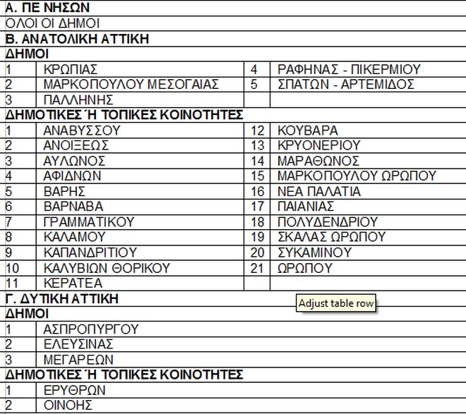ΠΙΝΑΚΑΣ ΠΕΡΙΟΧΩΝ ΕΦΑΡΜΟΓΗΣ ΤΟΥ ΥΠΟΜΕΤΡΟΥ 6.1 ΤΟΥ ΠΑΑ ΓΙΑ ΤΗΝ ΑΤΤΙΚΗ