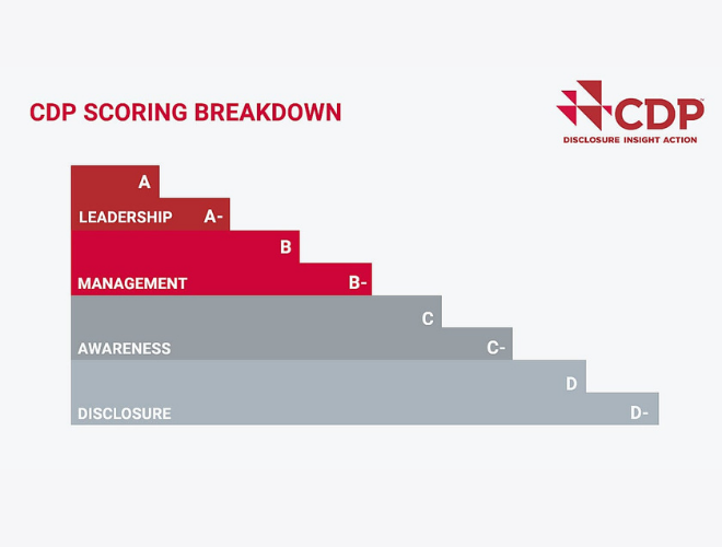 Παράλληλα, ο Όμιλος σημείωσε «A Βαθμολογία» στην Πιστοποίηση που έλαβε από τον CDP, τον Μη Κυβερνητικό Οργανισμό που σχεδιάζει και αναπτύσσει μακροπρόθεσμα προγράμματα για τον περιορισμό των περιβαλλοντικών επιπτώσεων, τη διαμόρφωση μιας βιώσιμης οικονομίας και τη δραστηριοποίηση για την αντιμετώπιση της κλιματικής αλλαγής.