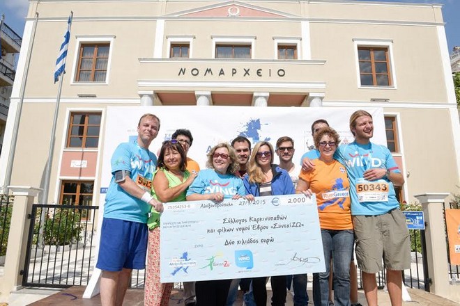Την επιταγή με το ποσό των 2.000 ευρώ για το σύλλογο ‘’ΣυνεχίΖΩ’’ παρέδωσε εκ μέρους της WIND στην Πρόεδρο του συλλόγου Αναστασία Σπυρίδου, ο Θεοκράτης Ιωαννίδης, συνεργάτης της χορηγού εταιρείας στην Αλεξανδρούπολη, ο οποίος μεταξύ άλλων δήλωσε: «Θα ήθελα να ευχαριστήσω όλους τους συμπολίτες μας που αγκάλιασαν για ακόμη μια χρονιά αυτή την μεγάλη αθλητική διοργάνωση και συνέφεραν με την συμμετοχή τους στην στήριξη του συλλόγου ‘’ΣυνεχίΖΩ’’».