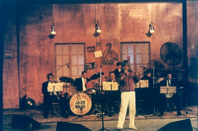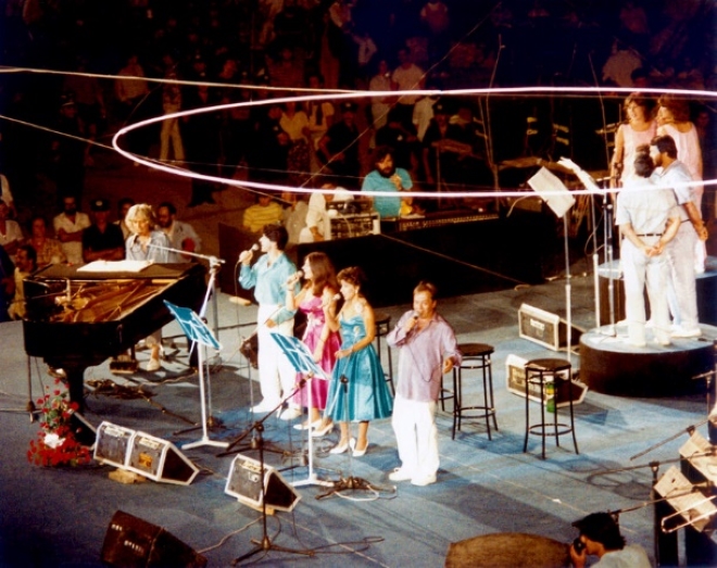 Το 1996, στη «Σκοτεινή πλευρά», μεταφέρει στη σκηνή του Λυκαβηττού το προσωπικό του στούντιο και αφιερώνει τη βραδιά σε λιγότερο γνωστά και ανέκδοτα κομμάτια του, ενώ το 1997 στη «Νέα Κυψέλη, Νέα Ορλεάνη», συμπράττει με την περίφημη «Preservation Hall Jazz Band» από τη Νέα Ορλεάνη σε ένα εντυπωσιακό σκηνικό-ρέπλικα του εσωτερικού χώρου του θρυλικού «Preservation Hall Jazz Club». Τέλος, το 2002, καλύπτει όλη τη σκηνή του Λυκαβηττού με αληθινό γκαζόν και στήνει ένα πραγματικό και λειτουργικό μπαρ, χαρίζοντας στο κοινό ένα αξέχαστο «Cocktail Party».