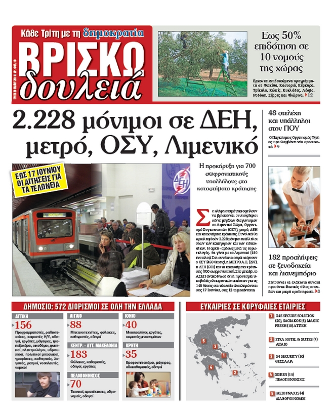 Στο εβδομαδιαίο χρηστικό ένθετο περιλαμβάνονται όλες οι θέσεις σε επιχειρήσεις και δημόσιο, οι ευκαιρίες για εργασία στο εξωτερικό και οι επιδοτήσεις για ανέργους και επιχειρήσεις.