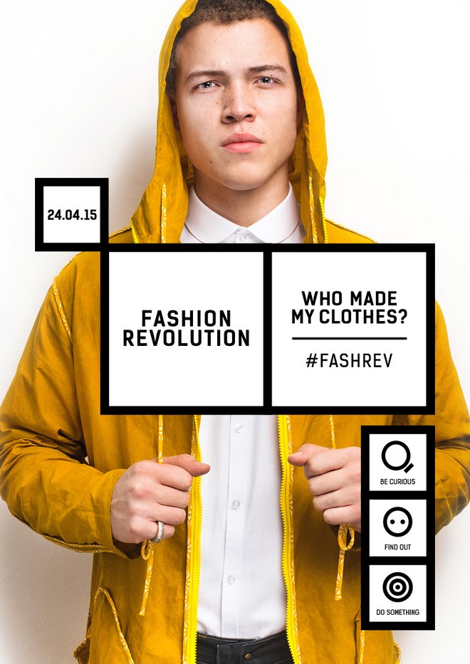 Με σύνθημα «who made my clothes» το παγκόσμιο κίνημα Fashion Revolution day, που φέτος δραστηριοποιείται σε 68 χώρες, επιδιώκει να κινητοποιήσει τους πολίτες, να αναρωτηθούν τι κρύβεται πίσω από τα ταμπελάκια των ρούχων τους και να ρίξει φως στη βιομηχανία της μόδας και τη διαδικασία παραγωγής.