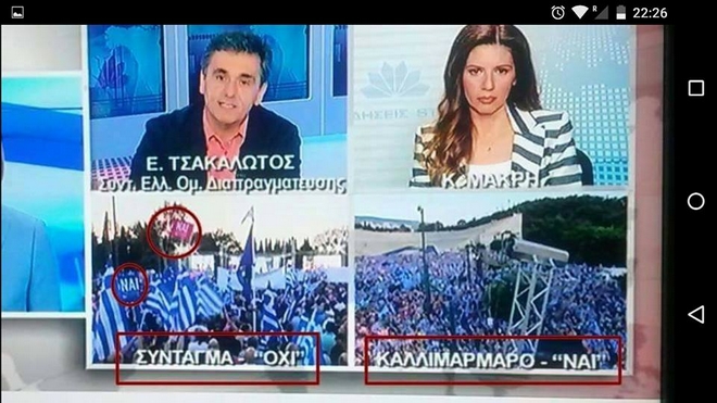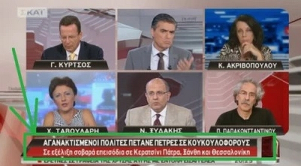 Το απόγευμα της ίδιας μέρας στην ενημερωτική εκπομπή του Νίκου Ευαγγελάτου φιγουράρει η λεζάντα “Αγανακτισμένοι πολίτες πετάνε πέτρες σε κουκουλοφόρους”. Στην ουσία επρόκειτο για ακροδεξιούς, ενώ η επίμαχη λεζάντα, προκάλεσε και την απορία δημοσιογράφων του BBC ως προς τον τρόπο παρουσίασης της είδησης.