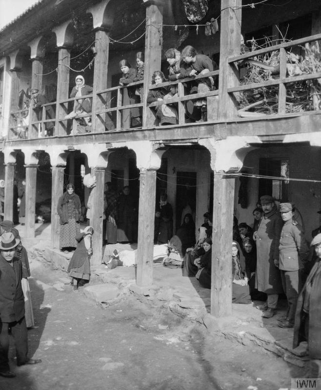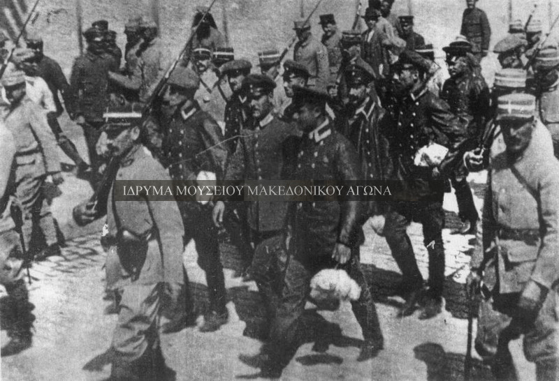 27. Πιλότοι και προσωπικό του γερμανικού Ζέπελιν οδηγούνται αιχμάλωτοι από γαλλικό στρατιωτικό απόσπασμα των συμμαχικών δυνάμεων της Αντάντ (συλλογή Νικόλτσιου. Ίδρυμα Μουσείου Μακεδονικού Αγώνα)