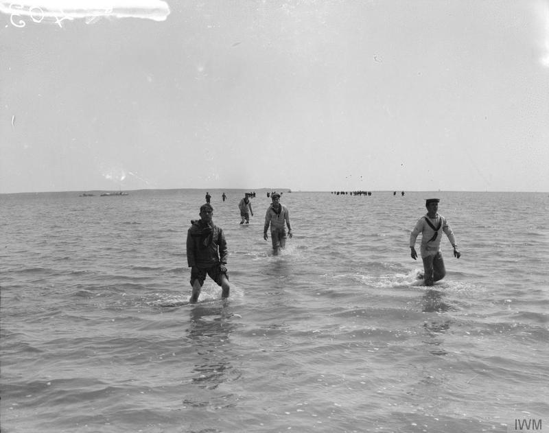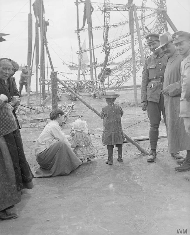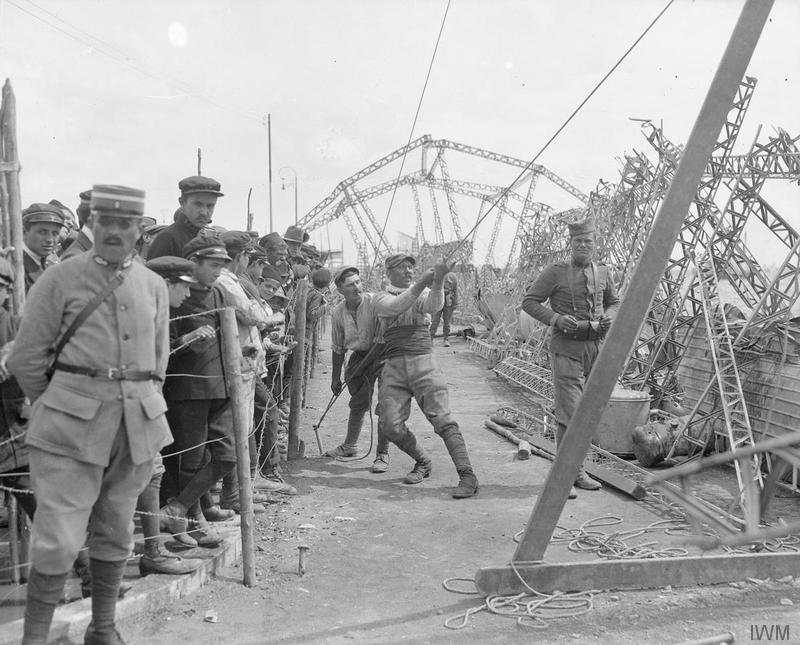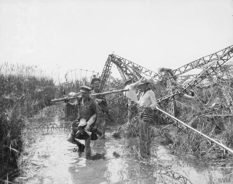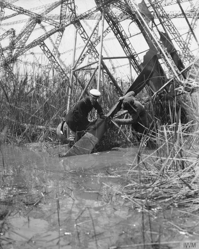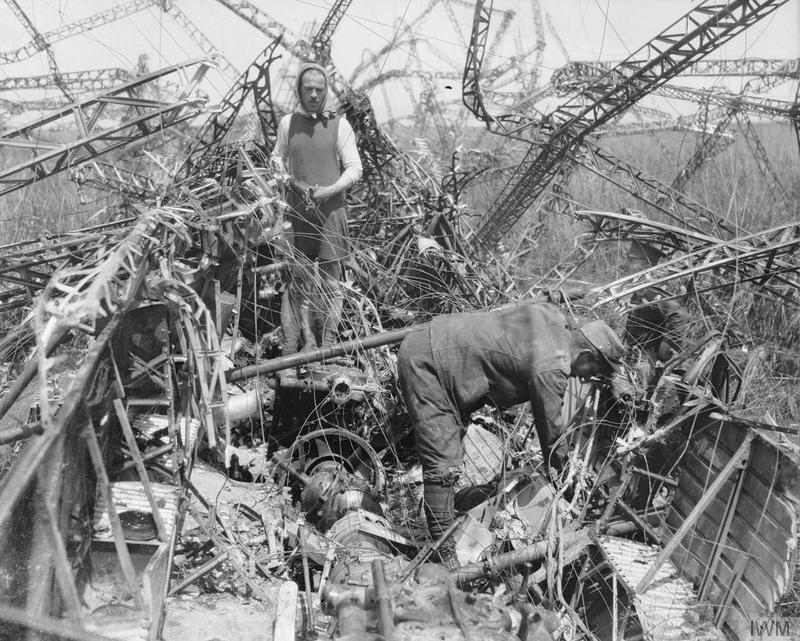 Βρετανοί και νοσηλευτικό προσωπικό από τη Νέα Ζηλανδία αποσπούν αναμνηστικά από τον αλουμινένιο σκελετό του Ζέπελιν