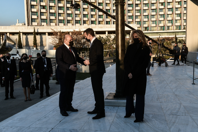 Ο πρωθυπουργός Κυριάκος Μητσοτάκης και η σύζυγός του Μαρέβα Γκραμπόφσκι- Μητσοτάκη υποδέχθηκαν τους επίσημους προσκεκλημένους στο νέο συγκρότημα της Εθνικής Πινακοθήκης, με αφορμή τη συμπλήρωση 200 ετών από την Επανάσταση του 1821.