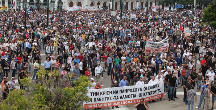 Στις 5 Μαΐου 2010 πραγματοποιήθηκε μια μεγαλειώδης συγκέντρωση και πορεία στο κέντρο της Αθήνας ενάντια στα μέτρα άγριας λιτότητας που είχε ανακοινώσει ο τότε υπουργός Οικονομικών Γιώργος Παπακωνσταντίνου.