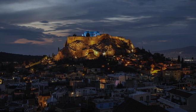 Ακρόπολη: Φωταγωγήθηκε μπλε για τα Δικαιώματα του Παιδιού