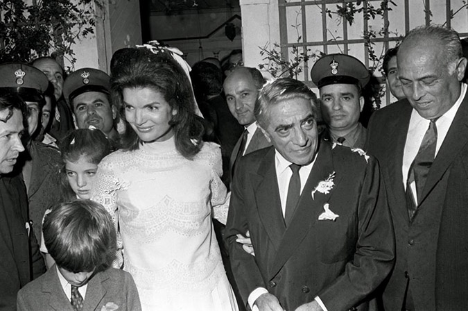 Για τον Ωνάση οι γυναίκες ήταν κυρίως άλλο ένα τρόπαιο για τη συλλογή του. Και στα τέλη της δεκαετίας του 1960 κανένα “τρόπαιο” δεν μπορούσε να λάμψει εντονότερα στα μάτια του από τη γοητευτική χήρα του δολοφονηθέντος προέδρου των Η.Π.Α. Τζον Φιτζέραλντ Κένεντι. Η τραγική δολοφονία του Ρόμπερτ Κένεντι, αδελφού του δολοφονημένου συζύγου της, τον Ιούνιο του 1968, δεν απέτρεψε τη ματαιόδοξη Τζάκι να επισημοποιήσει τον δεσμό της με τον Έλληνα κροίσο, μόλις τέσσερις μήνες αργότερα. Η είδηση έσκασε, όπως ήταν φυσικό, σαν βόμβα: Στις 20 Οκτωβρίου 1968, στο εκκλησάκι του Σκορπιού, η Τζάκι Κένεντι έγινε Τζάκι Ωνάση, Τζάκι “Ω” όπως έμεινε στην ιστορία[8]. Λίγο αργότερα, ο ίδιος ο Ωνάσης πήρε το τιμόνι του τζιπ που μετέφερε υπό βροχήν τους νεόνυμφους στη “Χριστίνα” για τη δεξίωση, με την Τζάκι να κρατά στην αγκαλιά της την Καρολίνα Μπουβιέ Κένεντι.