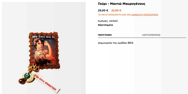 Μια διαφορετική κυκλοφορία βρέθηκε στο πωλητήριο του Μουσείου Μπενάκη, το οποίο φιλοξένησε επετειακό γούρι με τη Μαντώ Μαυρογένους, ως φεμινιστικό σύμβολο.