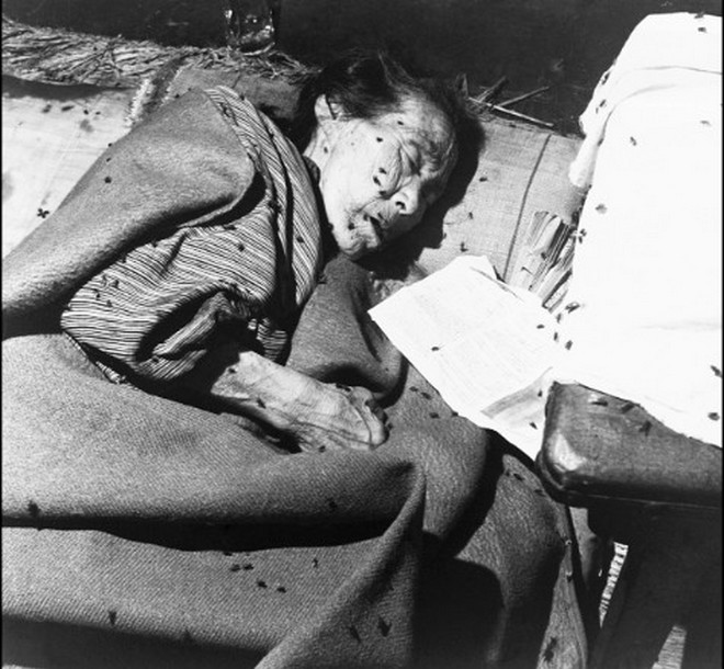 Μια ηλικιωμένη γυναίκα σε αυτοσχέδιο νοσοκομείο στη Χιροσίμα μετά την καταστροφή.
