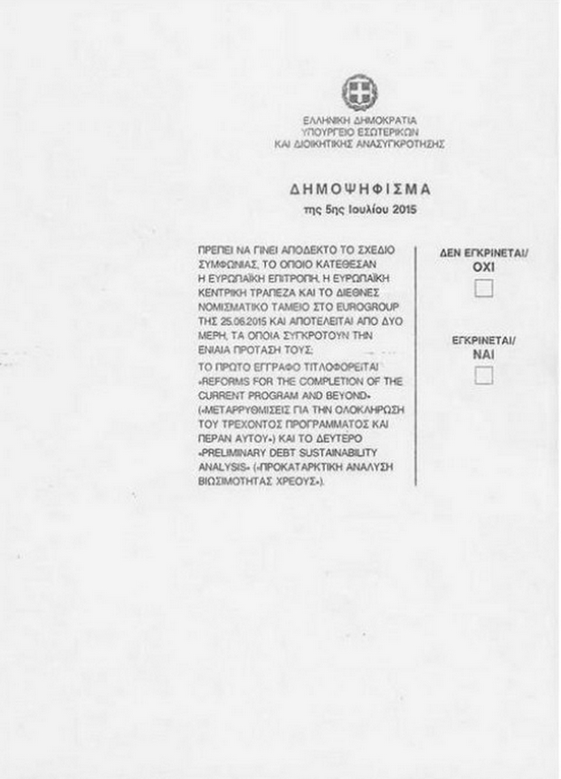 Το ψηφοδέλτιο με το ερώτημα που είχε τεθεί: