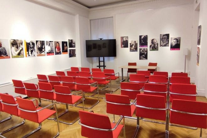 Και τα δυο είναι στο κέντρο των πόλεων. Στην Αθήνα βρίσκεται στο ιστορικό κτίριο της Σκουφά 31, όπου λειτουργεί και η πιο σημαντική ισπανόφωνη βιβλιοθήκη της Ελλάδας.