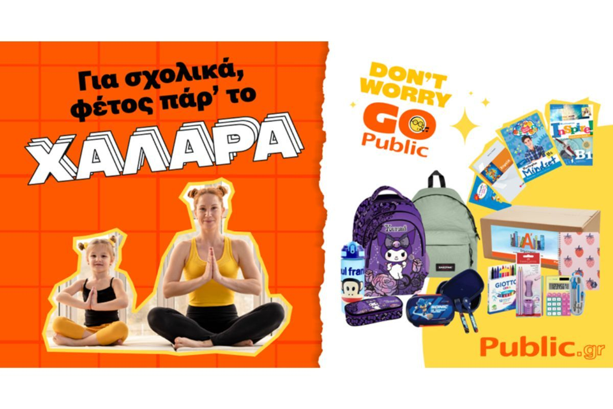 Η αντίστροφη μέτρηση για τη νέα σχολική χρονιά έχει αρχίσει, με τα Public να είναι πάντα δίπλα στους γονείς και τους μαθητές, ώστε να εξελίξουν σε παιχνίδι και την προετοιμασία εν όψει του πρώτου κουδουνιού. Με moto “Για σχολικά, φέτος πάρ’ το χαλαρά. Don’t Worry, Go Public”, τα Public προσφέρουν χιλιάδες επιλογές για ό,τι χρειάζονται οι μαθητές, για κάθε τάξη, ηλικία και γούστο.