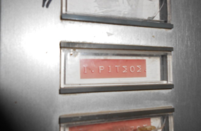 Γιάννης Ρίτσος (Μιχαήλ Κόρακα 39, Κάτω Πατήσια)