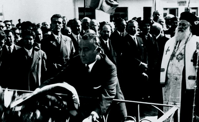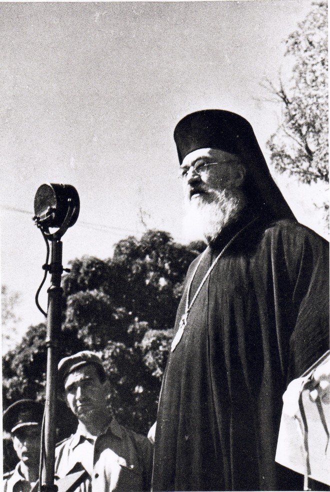 Κατάθεση στεφάνου στη Ζάκυνθο, λίγα χρόνια μετά το τέλος του πολέμου, από τον Δήμαρχο Λουκά Καρρέρ. Πίσω του διακρίνεται ο Μητροπολίτης Χρυσόστομος