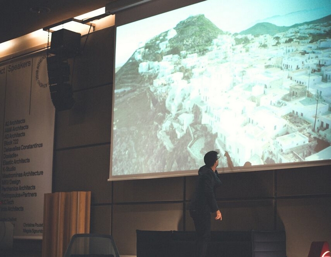 Τη σκυτάλη πήρε το K Studio και ο κ. Δημήτρης Καραμπατάκης, σε ένα δύσκολο, όπως είπε follow up. O κ. Καραμπατάκης, μαζί με τους κ. Σωτήρη Τσέργα του Block 722, Αριστείδη Ντάλα της AD Architecture, Vois Architects και Σωτήρη Ανυφαντή των Α2 Αrchitects, υπό τον συντονισμό της κ. Μάγδας Σγουρίδη, συμμετείχαν στην πρώτη από τις τέσσερις θεματικές του συνεδρίου, όσον αφορά την εξοχική κατοικία.