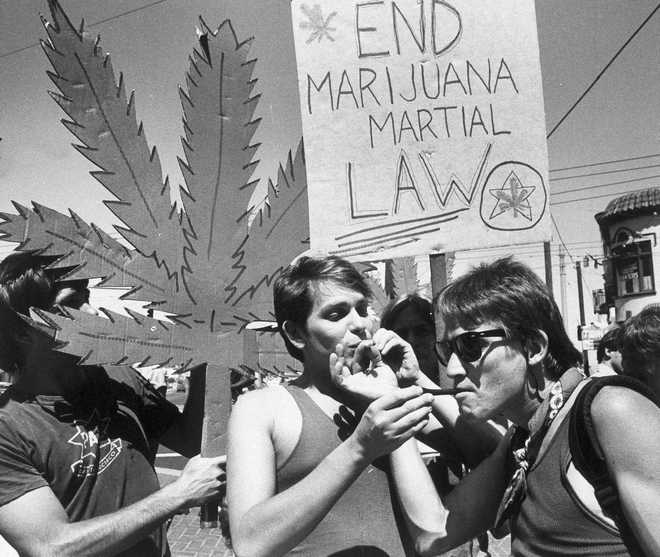 Το καρέ που τραβήχτηκε σαν σήμερα πριν από 35 χρόνια, απαθανάτισε δύο διαδηλωτές σε συγκέντρωση για τη νομιμοποίηση της κάνναβης στο Σαν Φρανσίσκο στην Καλιφόρνια στις 13 Ιουλίου του 1984.