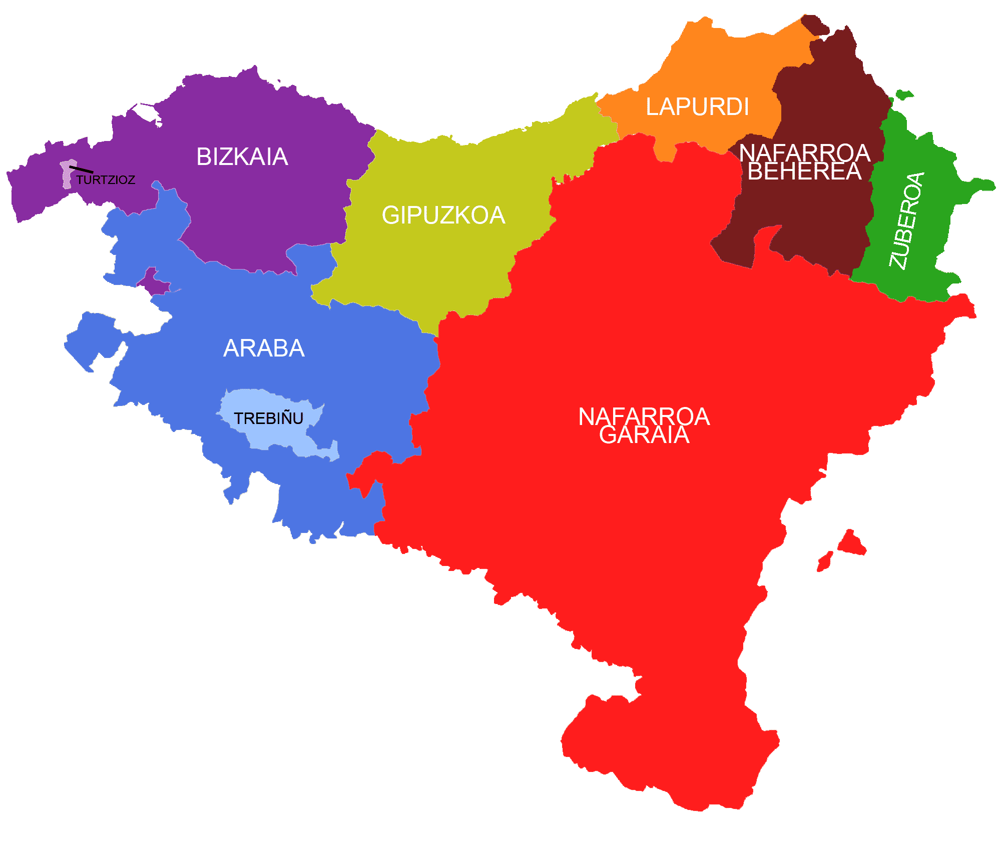 Στο καταστατικό της Αυτονομίας της Χώρας των Βάσκων, το περίφημο Estatuto de Guernica, που ψηφίστηκε το 1979, αλλά και σύμφωνα με παλαιότερες αναφορές που ξεκινούν από τα μέσα του 16ου αιώνα, χρησιμοποιείται ο βασκικός όρος Euskal Herria για να προσδιορίσει τα εδάφη της Χώρας των Βάσκων, ή αν προτιμάτε, της Πατρίδας των Βάσκων. Ως Euskal Herria (πατρίδα, χώρα, επικράτεια των Βάσκων) περιγράφεται η περιοχή που βρίσκεται στις δυο μεριές των Πυρηναίων και οριοθετείται γεωγραφικά και διοικητικά από τις εξής 7 επαρχίες: Στην Ισπανία από τις Vizcaya (Μπιλμπάο), Álava (Βιτόρια), Guipúzcoa (Σαν Σεμπαστιάν) και Navarra (Παμπλόνα). Στη Γαλλία από τις Labourd (Μπαγιόν), Soule (Μολεόν) και Basse Navarre (Σεν Ζαν Πιέ ντε Πορτ). Οι Βάσκοι ονομάζουν τις 4 επαρχίες επί ισπανικού εδάφους, Euskadi και τις 3 γαλλικές, Iparralde.