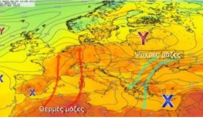 Κάθε καλοκαίρι συνήθως προς τα τέλη Ιουνίου η Δυτική Ευρώπη αρχίζει να «ψήνεται» από έντονο κύμα ζέστης , ενώ αντίθετα στη Νοτιοανατολική Ευρώπη τα πράγματα είναι συνήθως διαφορετικά . Αν ειδικότερα εγκατασταθέί ένας πεδίο υψηλών πιέσεων στα βόρεια Βαλκάνια ή και λίγο βορειότερα στην Ανατολική Ευρώπη , τότε αρχίζει στη χώρα μας το σύστημα να συνδυάζεται με τις χαμηλές της Ανατολικής Μεσογείου και προκαλούνται ισχυροί βοριάδες στο Αιγαίο που μεταφέρου ψυχρότερες αέριες μάζες . Όλοι γνωρίζουμε ότι το μελτέμι είναι ο ετήσιος καλοκαιρινός τοπικός ημερήσιος άνεμος που εκδηλώνεται στις ελληνικές θάλασσες και κυρίως στο Αιγαίο με διεύθυνση των ανέμων στο βόρειο Αιγαίο την ΒA, στο κεντρικό την Β και ΒΑ, στο νότιο Αιγαίο και Κρητικό πέλαγος ΒΔ., φθάνοντας μέχρι τις δυτικές διευθύνσεις κυρίως στη Ρόδο.