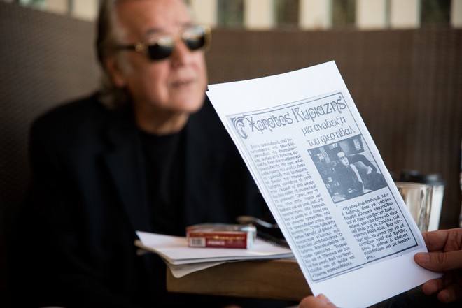 Ο ίδιος ο Χρήστος Κυριαζής διάλεξε ώρα και μέρος. Το ραντεβού ορίστηκε για τις 8.30 το πρωί, στο Freddo cafe στην Καστέλα. Φτάσαμε με την Φραντζέσκα στην ώρα μας και τον βρήκαμε ήδη να έχει κάτσει στην αγαπημένη του θέση, με το Πασαλιμάνι να απλώνεται μπροστά του και να καθρεφτίζεται στα μαύρα γυαλιά που δεν έβγαλε ούτε για πέντε δευτερόλεπτα.