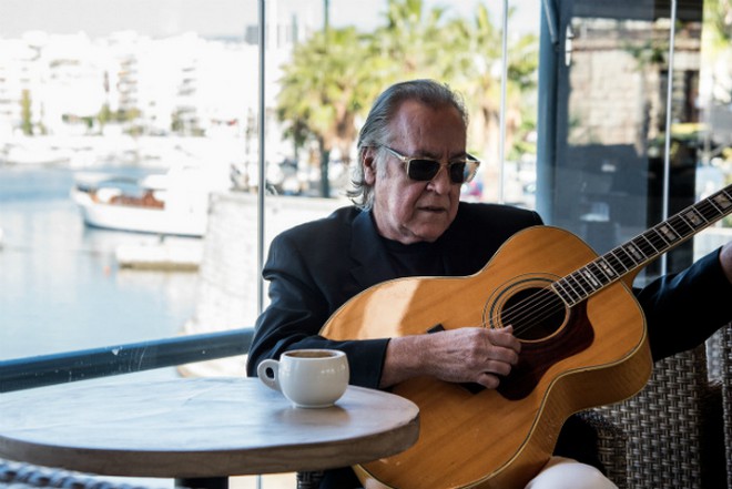Του διαβάζω τις δηλώσεις του απ’ το 1976. “Το μόνο που επιθυμώ είναι να γράψω όμορφα ελληνικά τραγούδια και να ζήσω μια ήσυχη ζωή. Βέβαια, καλό θα ήταν να είχα μια βίλα στη Ν. Γαλλία, μια πράσινη Ρολς Ρόις, ένα κότερο και τα μάτια της να με κοιτάζουν πρωί και βράδυ, αλλά δεν χάθηκε και ο κόσμος, συμβιβάζομαι και με λιγότερα”.