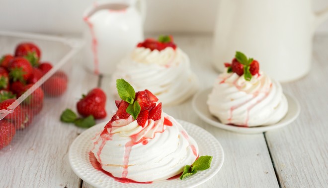 Δείτε τη συνταγή για μίνι πάβλοβες με γλυκό κουταλιού φράουλα