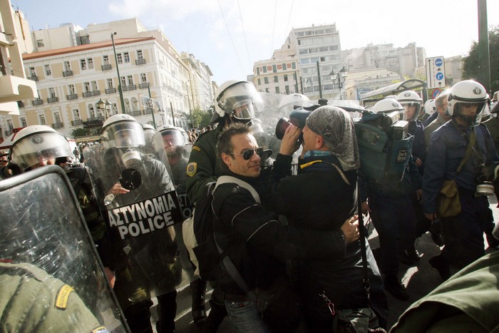 Τραγική στιγμή, έξω από το υποκατάστημα της τράπεζας Marfin, άνδρες των ΜΑΤ συμπλέκονταν με διαδηλωτές, διαδηλωτές έβαλαν κατά δημοσιογράφων, αλλά και αστυνομικοί τα έβαλαν με τους εκπροσώπους του Τύπου, την ίδια ώρα που μέσα στο υποκατάστημα υπήρχαν ακόμη οι σοροί των τριών θυμάτων και ένα όργιο φημών εξαπλωνόταν στην Αθήνα και όλη την Ελλάδα.