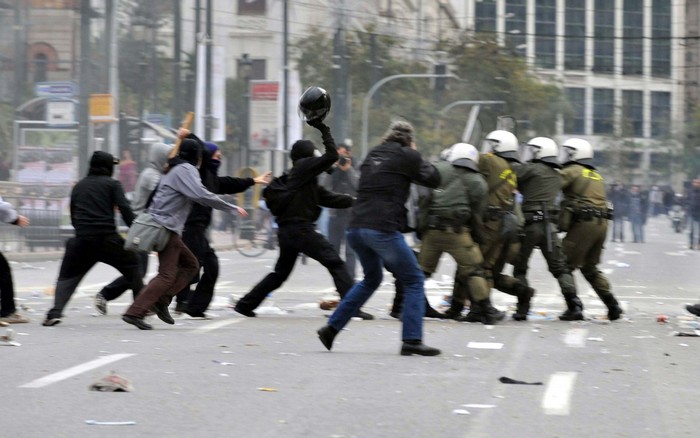 Την ώρα που στη Βουλή εξελισσόταν η συζήτηση για το Μεσοπρόθεσμο, έξω από το κτίριο, στους δρόμους γύρω από το Σύνταγμα ξεσπούσαν βίαιες συγκρούσεις, καθώς οργισμένοι διαδηλωτές εξέφρασαν την αντίθεσή τους στο Μεσοπρόθεσμο και τα σκληρά μέτρα που αυτό φέρνει.