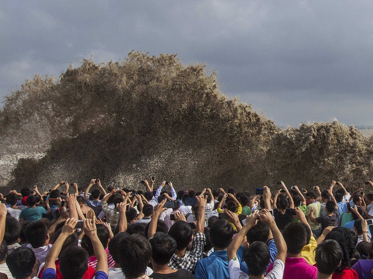 Φωτογραφία από το παλιρροϊκό κύμα που δημιουργήθηκε από τον τυφώνα στη Hangzhou, στην επαρχία Zhejiang της Κίνας. Έχασαν τη ζωή τους δυο άνθρωποι στις Φιλιππίνες και τραυματίστηκαν άλλοι εννέα στην Ταΐβάν