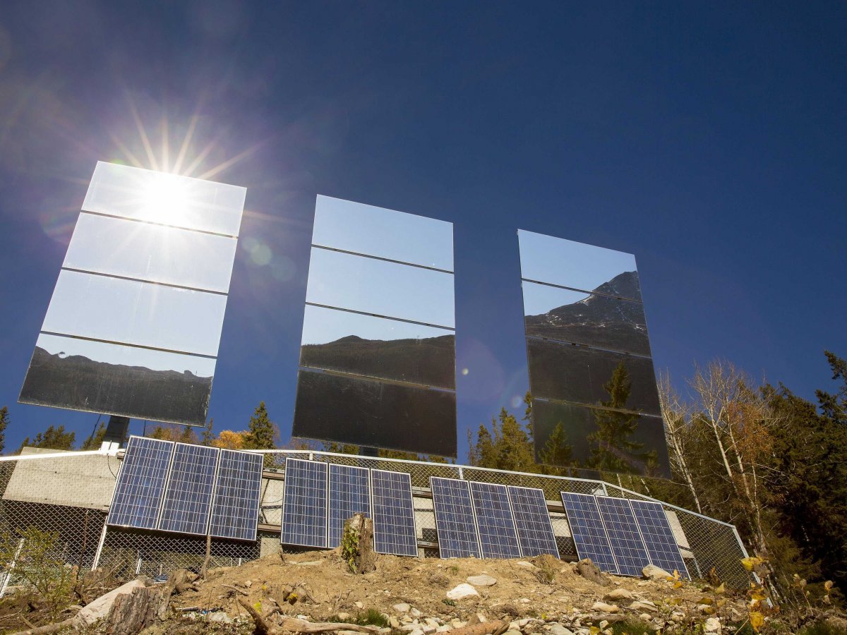 Γιγάντια κάτοπτρα σε Νορβηγικές  βουνοπλαγιές στην πόλη Rjukan. Έχουν ρυθμιστεί να ακολουθούν τον ήλιο και να αντανακλούν το φως του στην πόλη