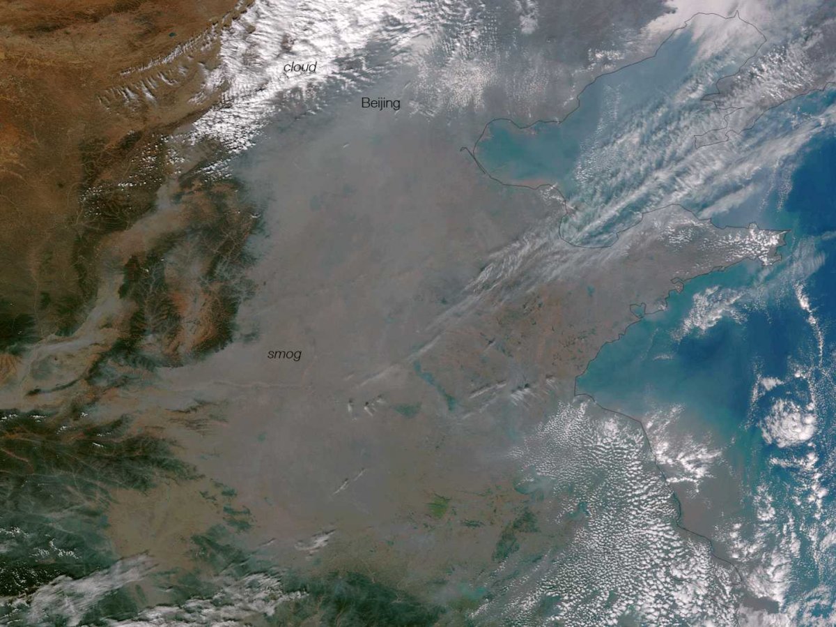 Δορυφορική εικόνα από την Κίνα δείχνει το πρόβλημα του νέφους από την ατμοσφαιρική ρύπανση.