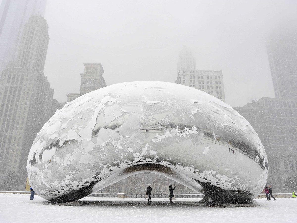Στρώμα πάγου στο “Cloud Gate” του Σικάγο.