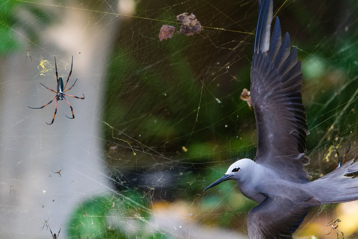 Πούλι μπλεγμένο στον ιστό μιας αράχνης.