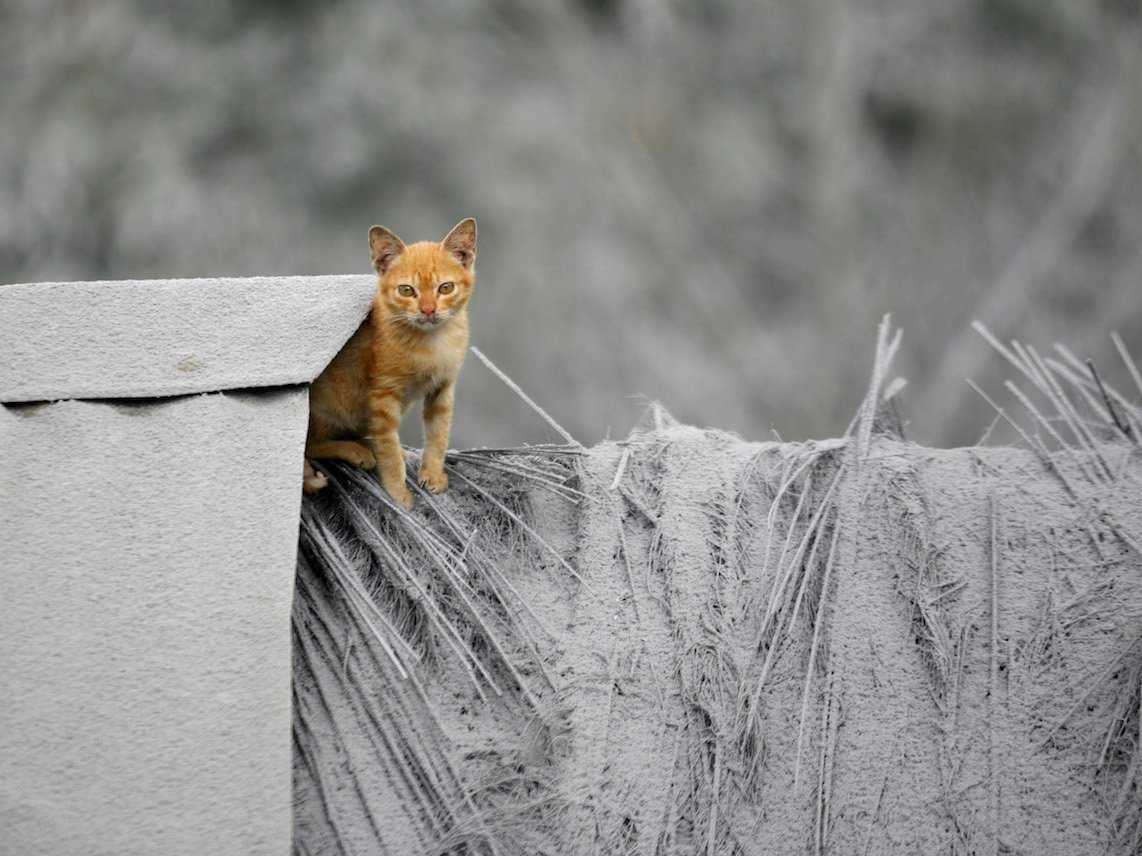 Γατάκι μέσα στη στάχτη από το ηφαίστειο που εξερράγη στο όρος Sinabung στη Βόρεια Σουμάτρα. Ήταν σιωπηλό για μερικές εκατοντάδες χρόνια.