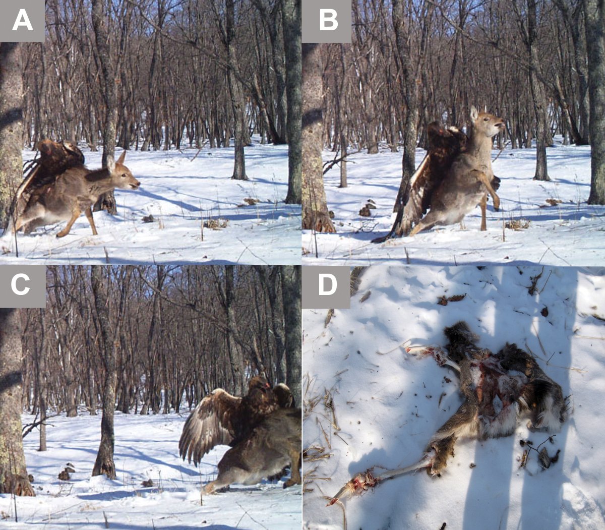 Φωτογραφίες από την επίθεση ενός χρυσού αετού σε ένα μικρό ελάφι στη νότια Ρωσία.