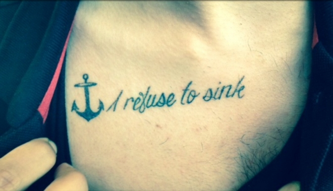 Όμως, δεν είχε άλλη επιλογή. Έπρεπε να φύγει και να ακολουθήσει τον ίδιο δρόμο. «Ούτε και σήμερα δεν μπορώ να καταλάβω πώς έχω βρεθεί σε αυτή την κατάσταση. Πριν φύγω, σκέφτηκα μέσα μου ότι μπορεί και να πέθαινα σε μια βάρκα μέσα στη θάλασσα, πριν φτάσω στην Ευρώπη.», θυμάται ο Χουσεΐν. Αρνήθηκε όμως το θάνατο. Έπεισε τον εαυτό του ότι θα τα κατάφερνε να περάσει τη θάλασσα και θα έφτανε ασφαλής στην Ευρώπη. Τότε έκανε το τατουάζ στο στέρνο του “Αρνούμαι να βουλιάξω”, μια δήλωση πείσματος και θέλησης να τα καταφέρει, να σταθεί τυχερός.