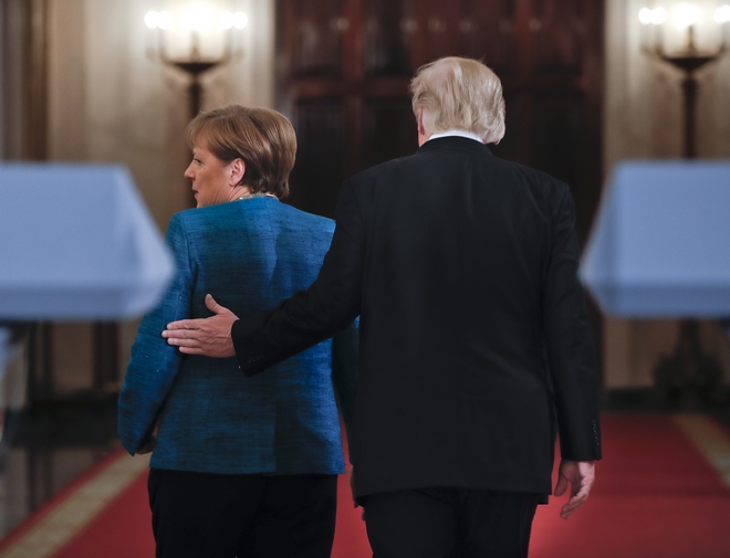 Φυσικά, δεν μπορούμε να ξεχάσουμε τη στιγμή κατά την οποία ο Ντ. Τραμπ αρνήθηκε να ανταποδώσει χειραψία προς τη καγκελάριο της Γερμανίας κατά τη συνάντηση τους και τις κοινές τους δηλώσεις στους εκπροσώπους του Τύπου στον Λευκό Οίκο.