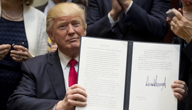 Μια ανασκόπηση των 100 πρώτων ημερών της θητείας Τραμπ. Προεδρικά διατάγματα, κινήσεις εντυπωσιασμού, διεθνείς επαφές, η Υπερειρηνική Συμφωνία Εταιρικής Σχέσης (TPP), η μετανάστευση και οι κυβιστήσεις μετά την αρχική επίθεση κατά πάντων (Pics+Vids)