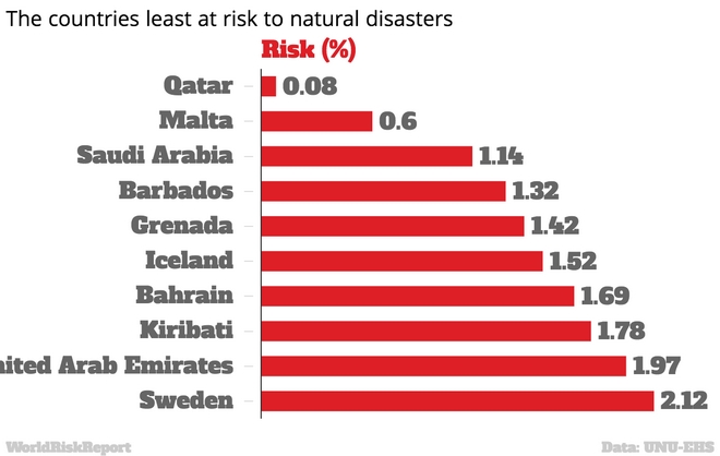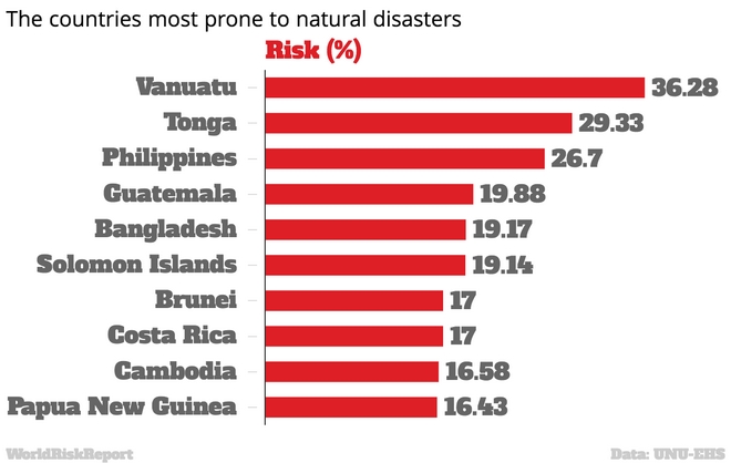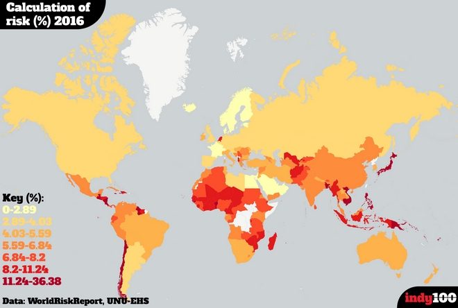 Ποιες είναι οι χώρες που αντιμετωπίζουν τον υψηλότερο κίνδυνο σε περίπτωσης φυσικής καταστροφής. Σε ποια κατηγορία ανήκει η Ελλάδα; (Pics)