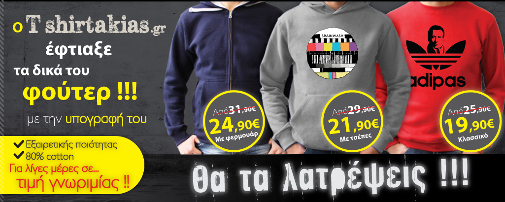 25% έκπτωση στα μπλουζάκια και τα φούτερ που θα φτιάξετε ειδικά για εσάς, για ποσά άνω των 29,90€