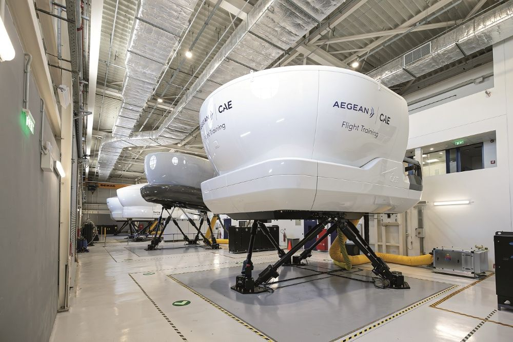 Στον ίδιο χώρο λειτουργεί και το AEGEAN│CAE Flight Training Center, το νέο κέντρο εκπαίδευσης πληρωμάτων σε συνεργασία με την CAE, κορυφαίο διεθνή πάροχο αεροπορικής εκπαίδευσης, στοχεύοντας να εκπαιδεύει έως και 3.500 πιλότους και εκατοντάδες πληρώματα καμπίνας ετησίως, ενισχύοντας την εκπαιδευτική αυτάρκεια στον κλάδο των αερομεταφορών στη χώρα μας. Το κέντρο διαθέτει σήμερα 4 προσομοιωτές πλήρους πτήσης (Airbus A320, Boeing 737NG, ATR 72-600) με δυνατότητα επέκτασης σε 7. Οι προσομοιωτές λειτουργούν σχεδόν σε 24ωρη βάση, καλύπτοντας τόσο αρχική όσο και επαναληπτική εκπαίδευση πιλότων.