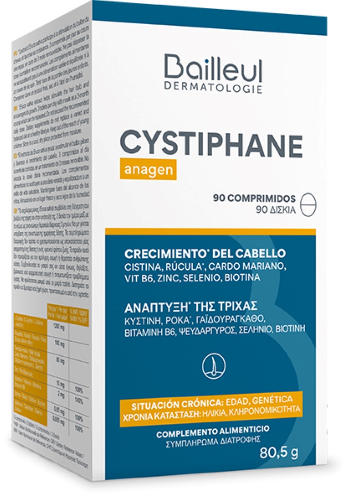 Πρόκειται για το Cystiphane anagen, ένα νέο, καινοτόμο προϊόν ενάντια στην τριχόπτωση. Είναι ιδανικό για την ανάπτυξη των μαλλιών, την προστασία των τριχοθυλακίων και τη θρέψη και ενδυνάμωση των ριζών.