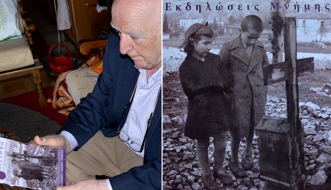 “Ήμασταν στο πατρικό μου. Ο πατέρας μου έκανε τον άρρωστο στο κρεβάτι για να μην τον πιάσουν οι Γερμανοί και η μητέρα μου είχε πάει στο σπίτι της μητέρας της, της γιαγιάς μου. Είχε αρραβωνιαστεί ο αδερφός της και έφτιαχναν τηγανίτες, έτσι γινόταν την εποχή εκείνη. Και μου λέει ο πατέρας μου, άντε πήγαινε να ειδοποιήσεις τη μάνα σου να έρθει σπίτι. Φοβότανε. Ξεκινάω εγώ, η αδερφή μου που ήταν 4 χρονών και το αδερφάκι μου ο Νίκος 2 ετών και μόλις πηγαίναμε προς την πάνω πλατεία, βλέπουμε τη μάνα μου να έρχεται προς τα κάτω. Παίρνει τον αδερφό μου τον Νίκο στα χέρια της και πάνε στον πατέρα μου. Εμείς συνεχίσαμε με την αδερφή μου να πάμε στο σπίτι της γιαγιάς μου. Γύρω μας ακούγαμε σφαίρες να πέφτουν συνέχεια. Για καλή μας τύχη εκεί ήταν και μία θεία μου, η Φανή, που μας πήρε και ευτυχώς δεν μας άφησε να πάμε στο πατρικό μας σπίτι, αλλά μας πήγε στο δικό της το σπίτι.