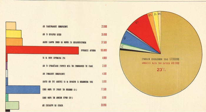 Η Ελλάδα κατά τη διάρκεια της κατοχής, έχασε 400.000 οικοδομές, δηλαδή το 28% του οικοδομικού της πλούτου και αξίζει να σημειωθεί ότι έρχεται πρώτη σε θυσίες μεταξύ των Συμμάχων.