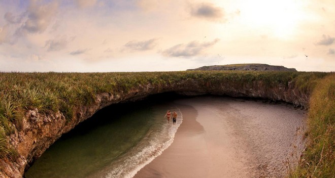 Η κρυμμένη παραλία, γνωστή και ως Playa Del Amor, βρίσκεται σ’ ένα από τα νησιά Marieta του Μεξικό. Η μαγευτική παραλία φαίνεται να δημιουργήθηκε από μια πολύ ισχυρή έκρηξη βόμβας στις αρχές του 20ου αιώνα. Με το πέρασμα του χρόνου η τρύπα γέμισε με νερό δημιουργώντας ένα από τα σπανιότερα μέρη του κόσμου.