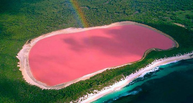 Η διάσημη “Ροζ λίμνη” βρίσκεται στο νησί Μιντλ στα νότια της Δυτικής Αυστραλίας και εμπεριέχει αλμυρό νερό. Με μήκος 600 μέτρα και πλάτος 200, η λίμνη περιβάλλεται από ένα δάσος με ευκαλύπτους και μυρτιές, ενώ μονάχα μια λεπτή λωρίδα αμμώδους γης την χωρίζει από τον ωκεανό. Η αιτία του μαγικού ροζ χρώματος του νερού της οφείλεται κατά πολλοίς στην ύπαρξη του μικρο-οργανισμού Dunaliella salinα.