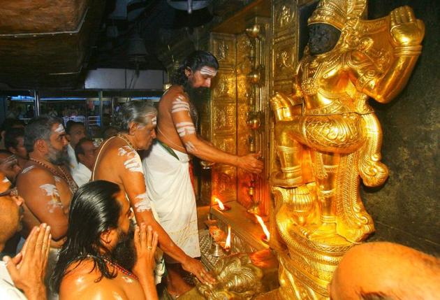 Σύμφωνα με την παράδοση ο θεός Ayyapa – που γεννήθηκε τόσο Σίβα όσο και Βισνού – ήρθε στην γη για να καταστρέψει έναν θηλυκό δαίμονα. Όταν εκπλήρωσε το πεπρωμένο του από το σώμα του δαίμονα αναδύθηκε μια όμορφη γυναίκα η οποία του ζήτησε να τον παντρευτεί. Αυτός αρνήθηκε ότι αποστολή του ήταν να πάει στο Sabarimala και να απαντάει στις προσευχές των πιστών. Της έδωσε όμως υπόσχεση ότι θα την παντρευτεί όταν σταματήσουν οι πιστοί να έρχονται. Κάτι τέτοιο φυσικά δεν έγινε και σε μία προσπάθεια να μην αποσπάται περισσότερο η προσοχή του θεού Ayyapa οι αρχές αποφάσισαν το 1991 να απαγορεύσουν την είσοδο των γυναικών. Το θέμα της απαγόρευσης έφθασε μέχρι το Ανώτατο δικαστήριο της Ινδίας όπου όμως το μοναστήρι δικαιώθηκε για την κίνηση του.