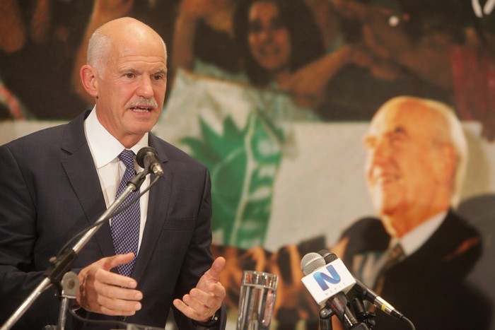Στις 31 Οκτωβρίου 2011, ανακοίνωσε την πρόθεσή του για διενέργεια δημοψηφίσματος με το ερώτημα της έγκρισης της νέας δανειακής σύμβασης για την κάλυψη των αναγκών χρηματοδότησης του χρέους της χώρας. Η μετάθεση της ευθύνης της απόφασης στον ελληνικό λαό ξεσήκωσε θύελλα διεθνών αντιδράσεων και προκάλεσε παγκόσμια οικονομική αναταραχή λόγω του φόβου για ενδεχόμενο φαινόμενο «ντόμινο».
